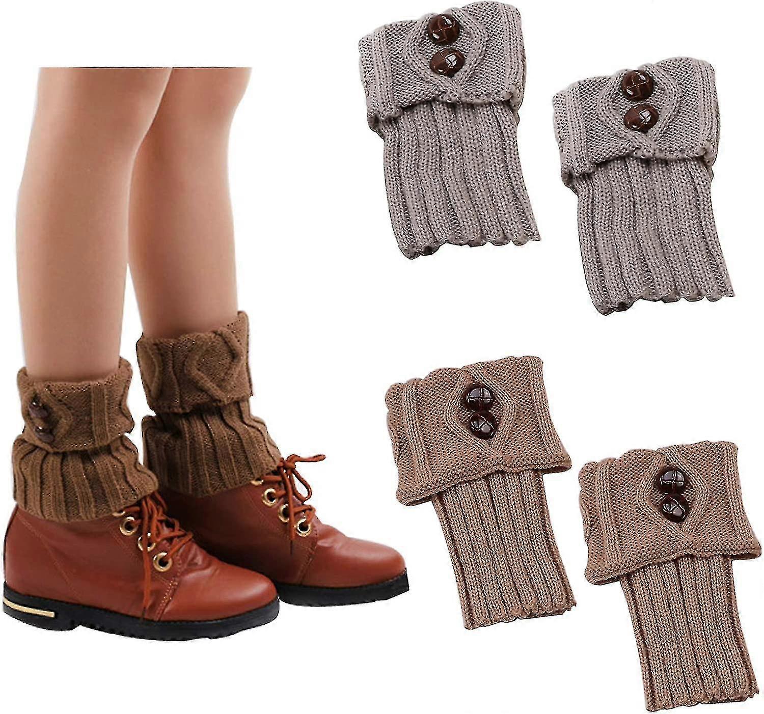 2 Pairs of Crochet Boot Cuffs for Short Women - Winter Cable Knit Leg Warmers