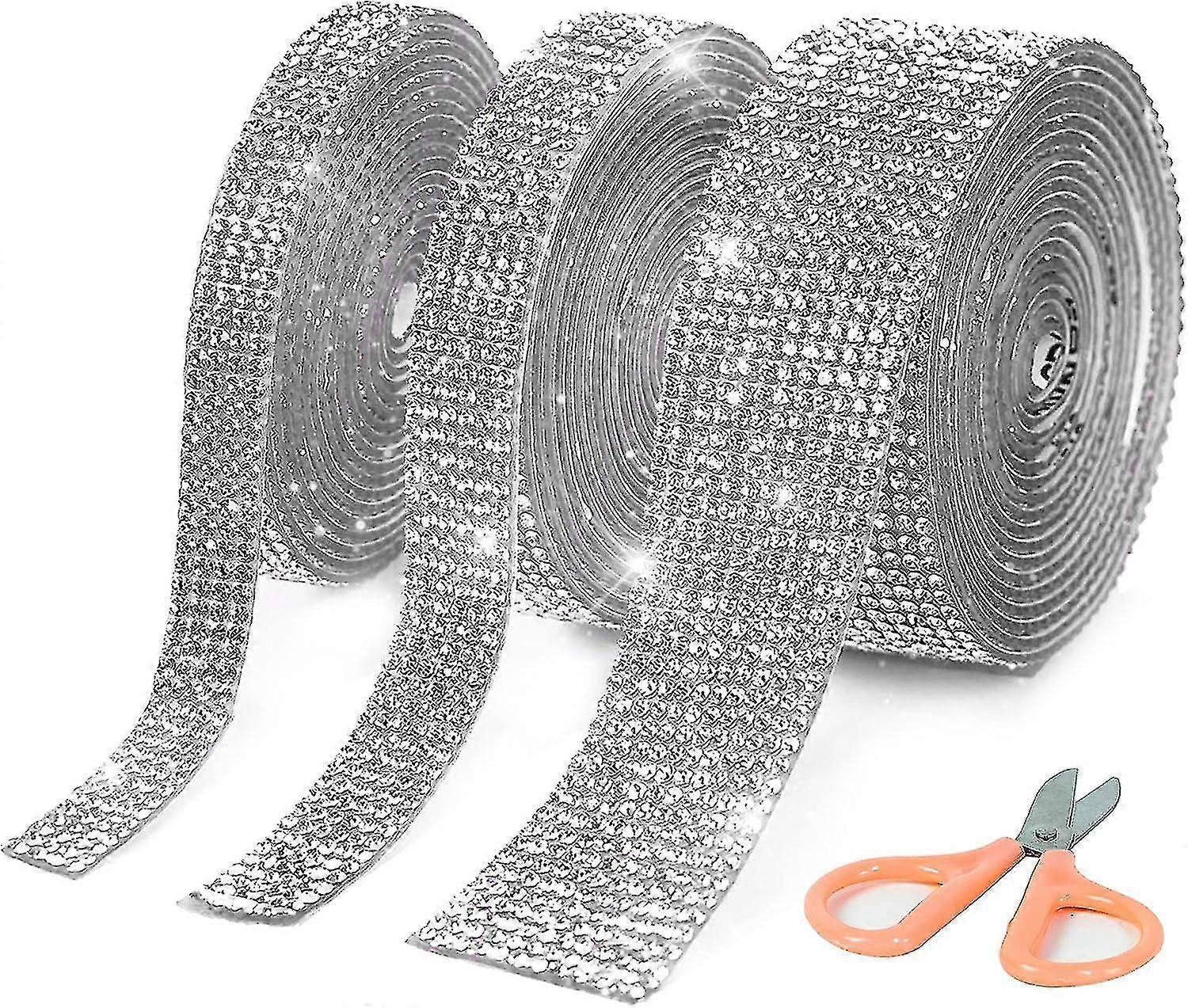 3 Pcs Rhinestone Ribbon Roll: Self-Adhesive Rhinestone Strips with 2mm Stones in 3 Distinct Sizes