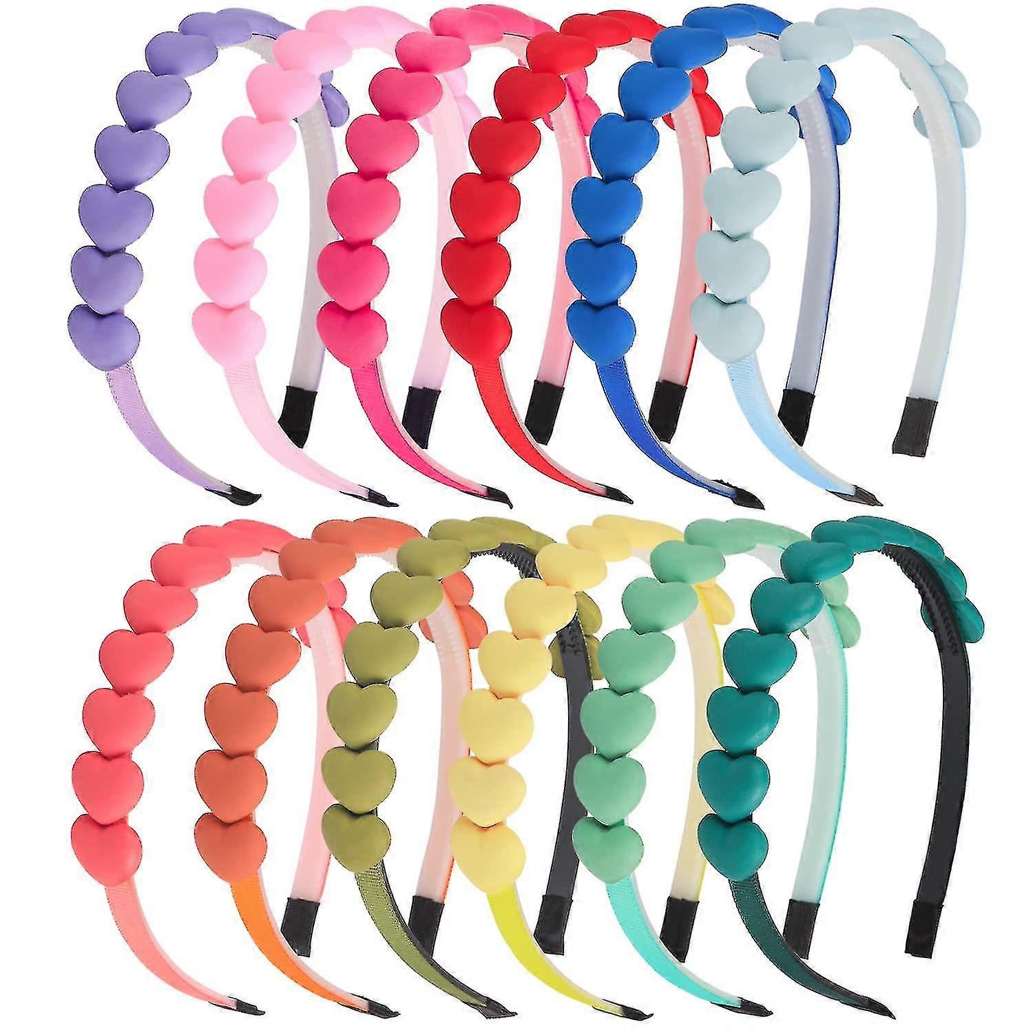 12 Pcs Heart Headbands for Girls & Women - Cute Colorful Hair Bands for Kids, Teens, & Toddlers