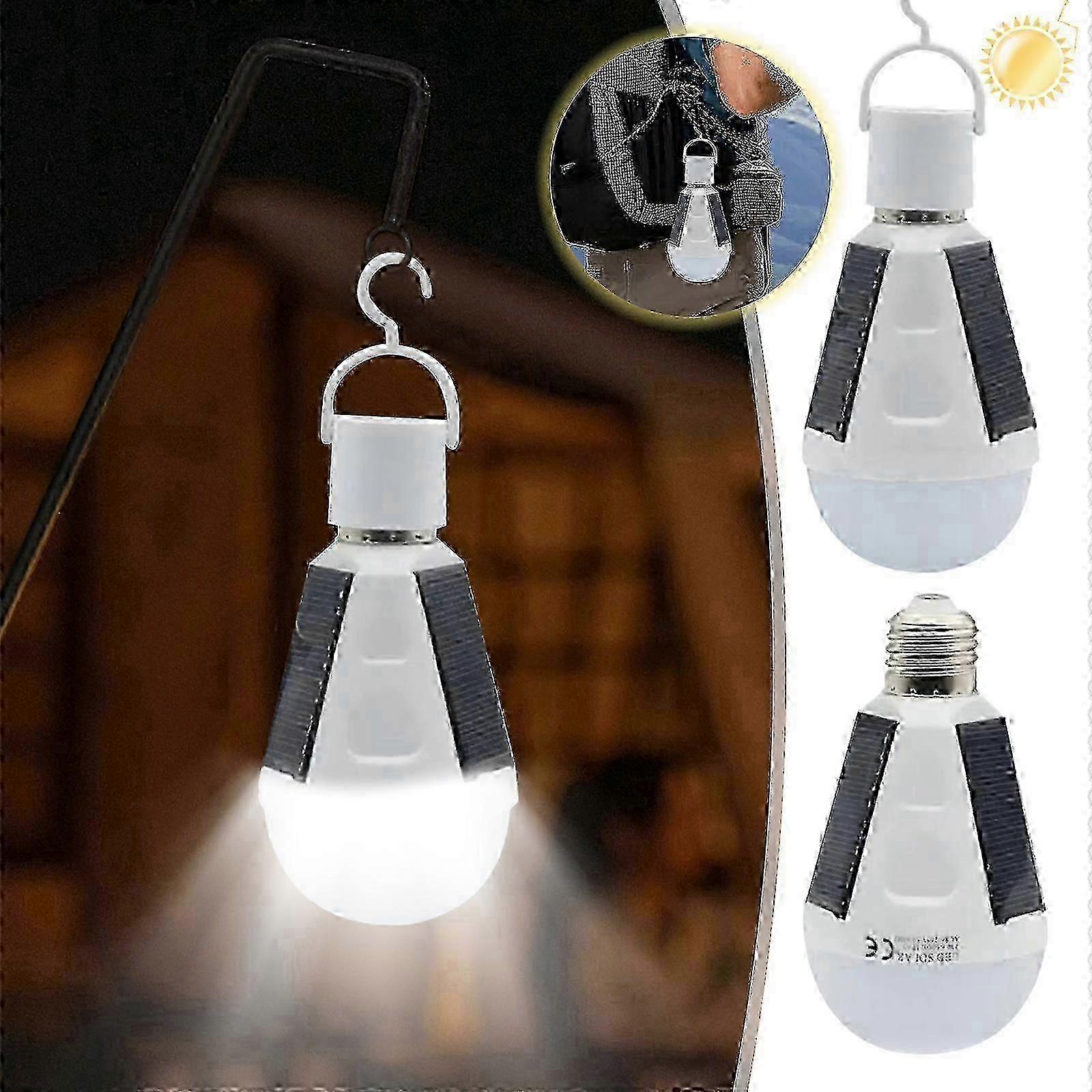 Bulbs Solar Lights Solar Charging Emergency Lights Camping Watertight Outdoor Tents LED Light Bulbs Portable Night Shelters Power Outages Features: Efficiency: The high brightness caused by accounting and the 1200mAh lithium battery can provide lighting for a long time and avoid overload. The basic and watertight E27 of the screw is IP65, which can be used on rainy days And the base screw E27 is common in most households. Emergency lighting: When you turn off the power, these light bulbs cause rechargeable light to automatically provide bright light in a dark environment. Easy to install: Installing these LED light bulbs for solar energy is straightforward by twisting them onto a regular light bulb (E27). In just a few seconds, you will have a bright light shining on you when you need it. Multi functional design: Ideal for home lighting, tourism, outdoor, emergency and power outages, travel, hiking, camping, and more. : Including: 1x solar emergency light bulb.