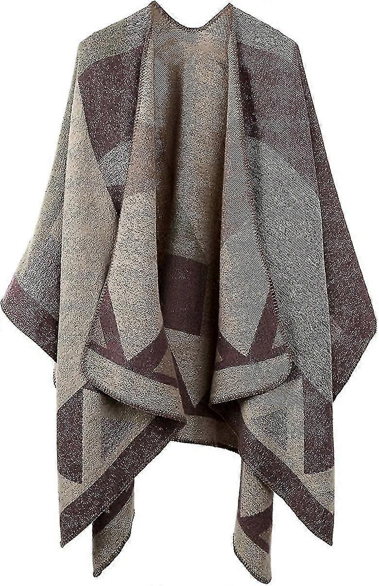 Womens Winter Shawl Wrap: Open Front Poncho Cape with Warm Print & Reversible Design - Perfect Gift