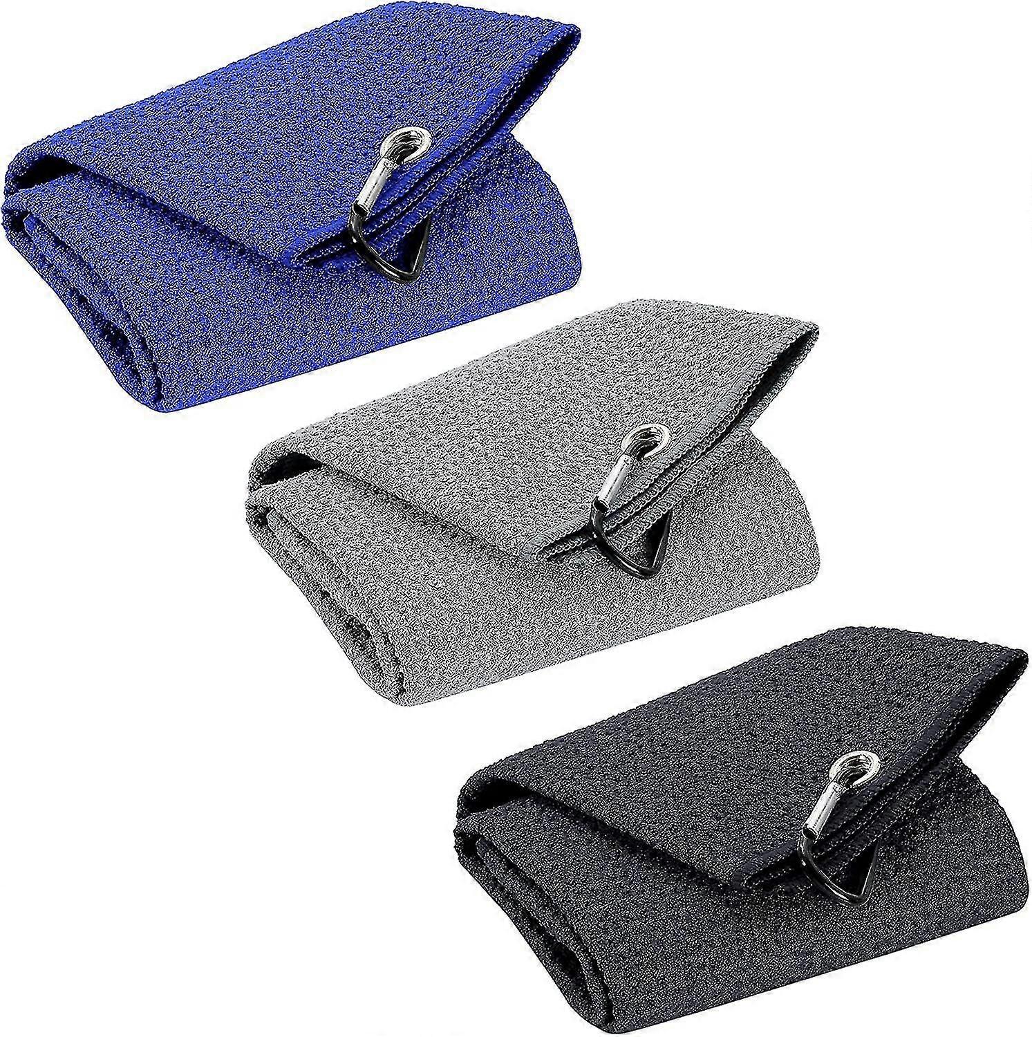 3-Pack Microfiber Golf Towels with Loop Clip for Hanging on Club Bag (Black, Blue & Gray, 40x60cm) - Tri-fold Towels