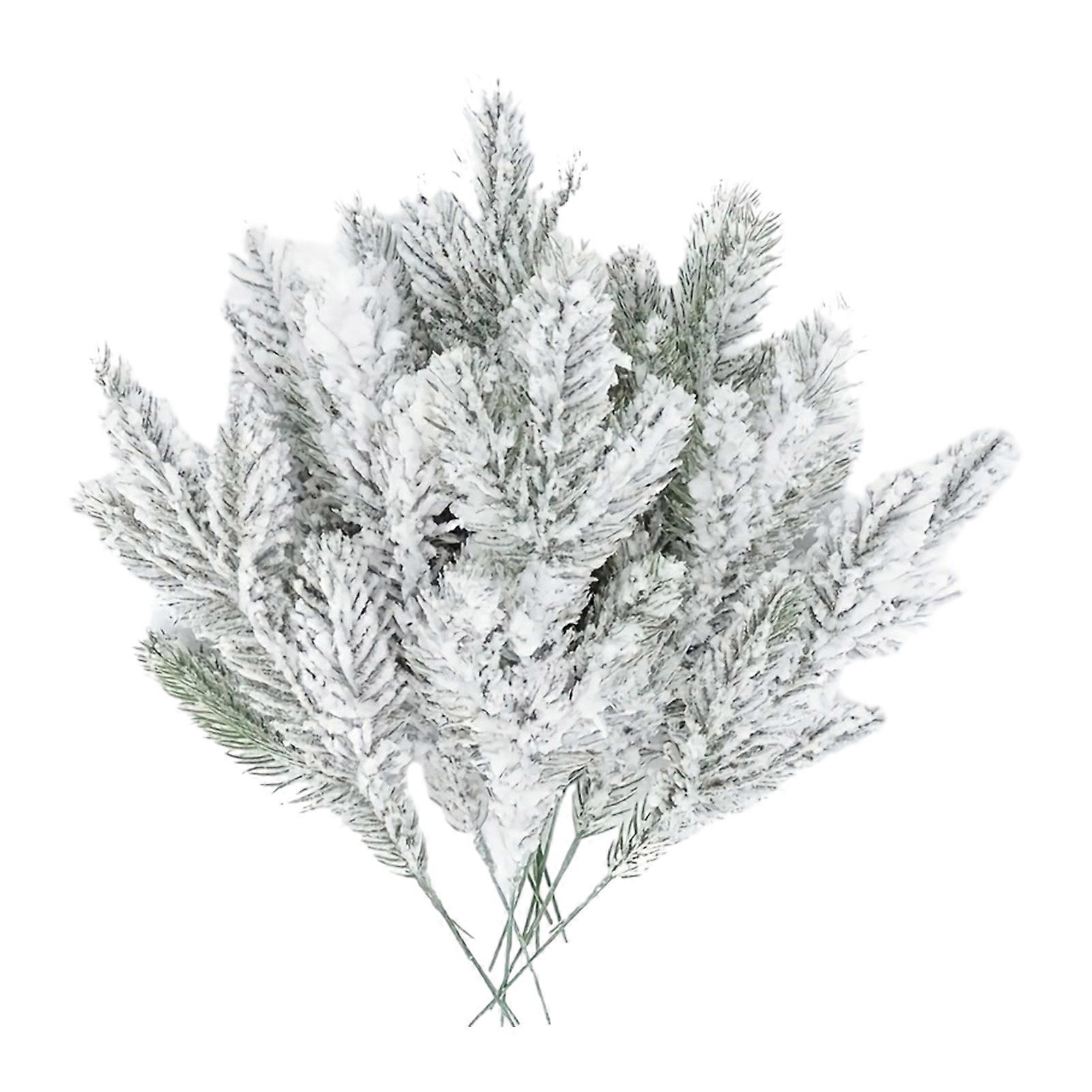 10/20/30Pcs Artificial Snowy Pine Branch 5 Fork Faux Greenery Stem Fake Plants Pick Xmas Holiday Wedding Party Home Decoration