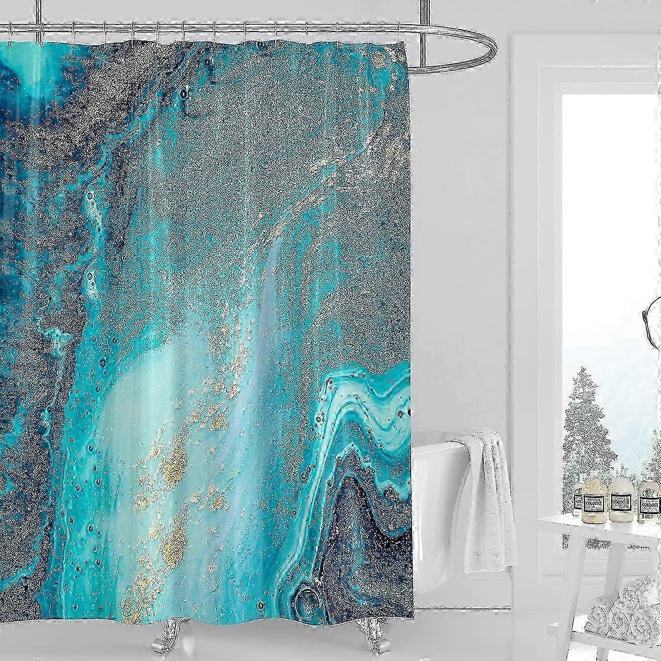 Blue Gold Marble Shower Curtain,Blue Golden Cracked Lines Abstract Modern Shower Curtain for Bathroom Decor,Waterproof Texture Washabl