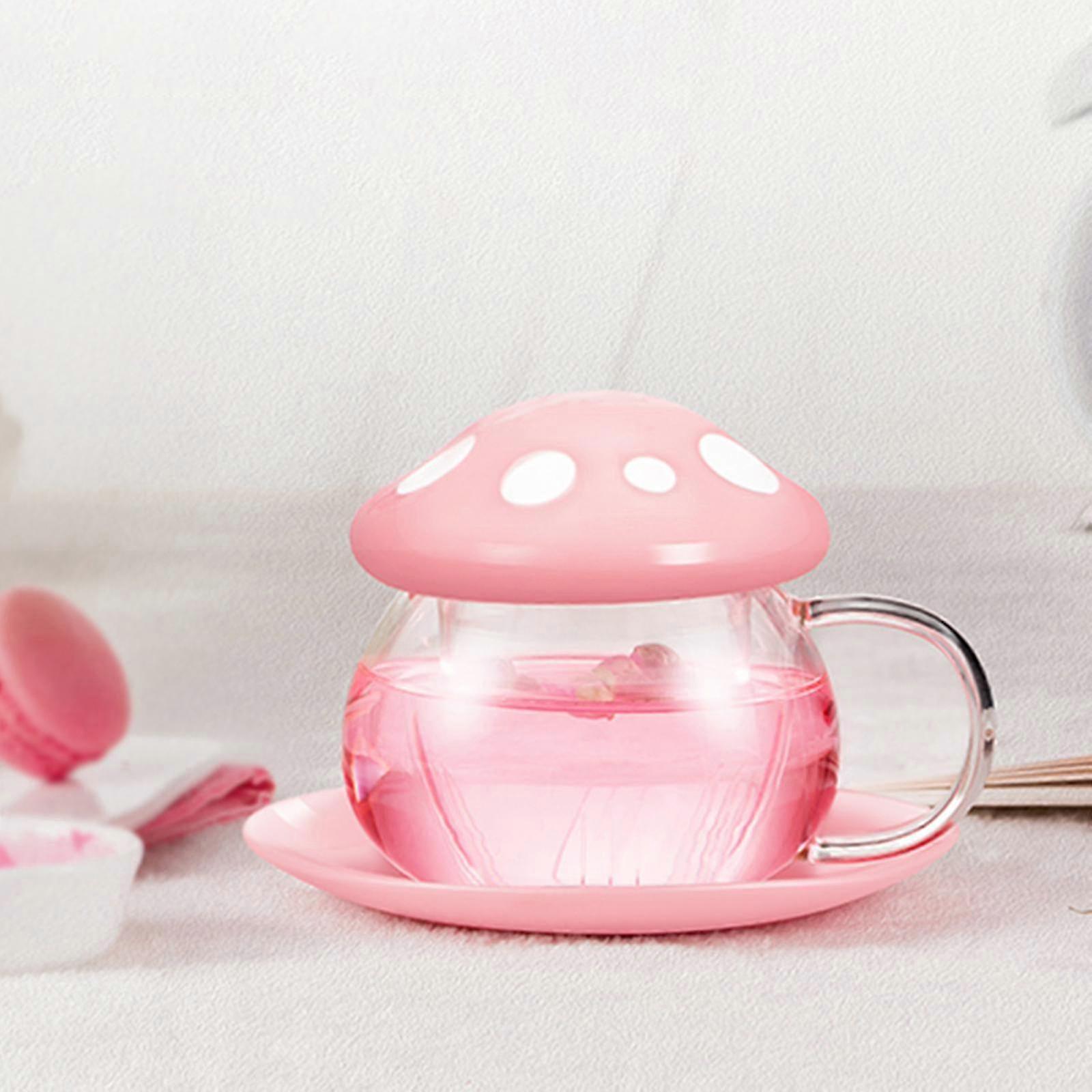 Cute Mushroom Glass Tea Cup, Mushroom Glass Coffee Cup with Strainer Infuser Lid and Saucer, Cute Gift for Girl Mom, Cute Kawaii Tea Kettle