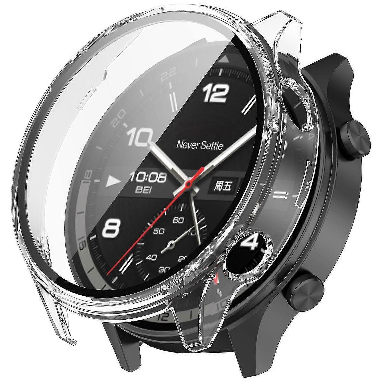 For OnePlus Watch 2R Case Hard PC Full Protective Watch Cover with Tempered Glass Film - Transparent (New Model)