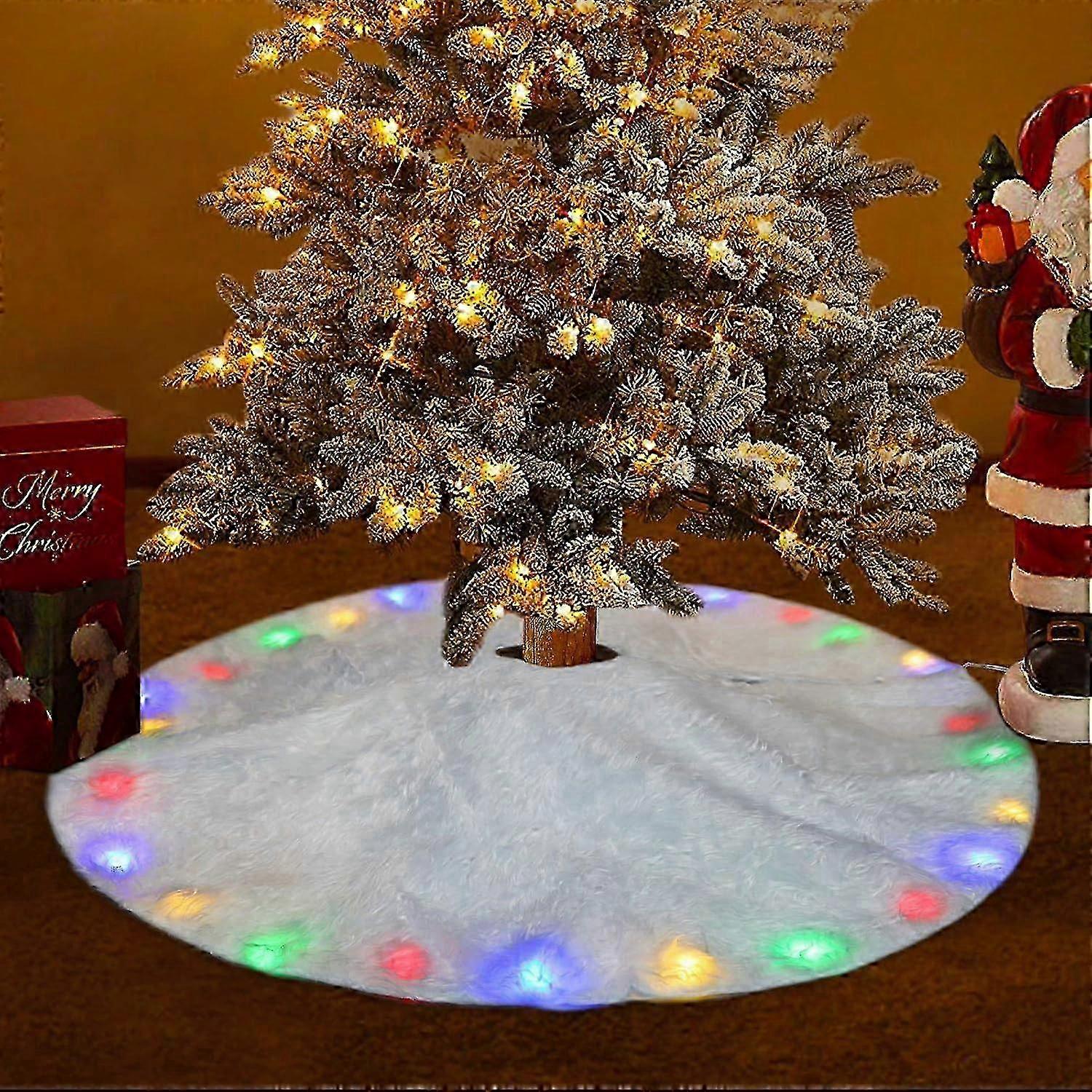 Christmas Tree Skirt 90CM White Plush Christmas Tree Skirt with LED Lights Christmas Tree Leg Cover Christmas Tree Skirt for Christmas