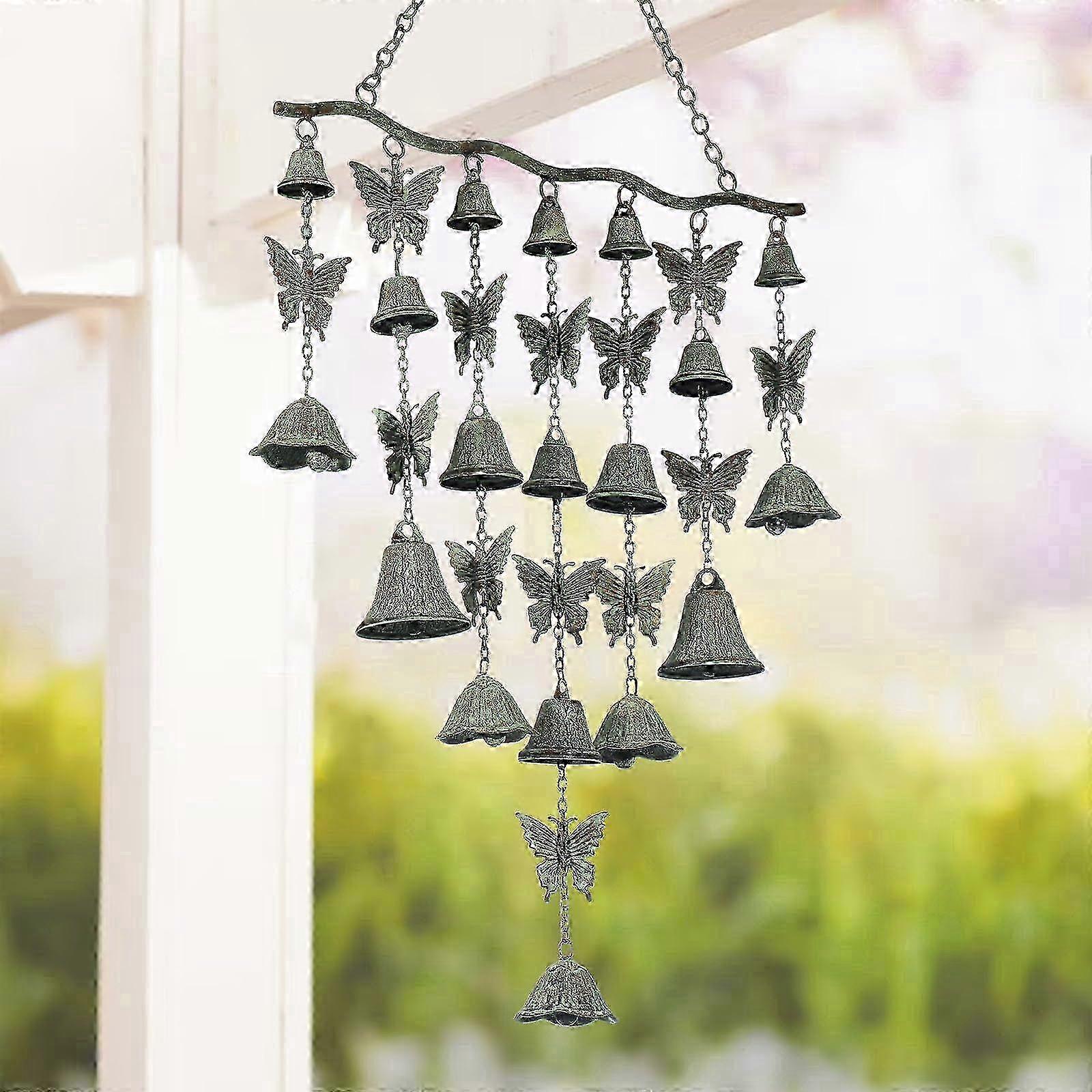 Butterfly wind bells out for the big tense vertigris wind Schimes garden, patio, porch outdoor decor, with wrought iron bell for monum