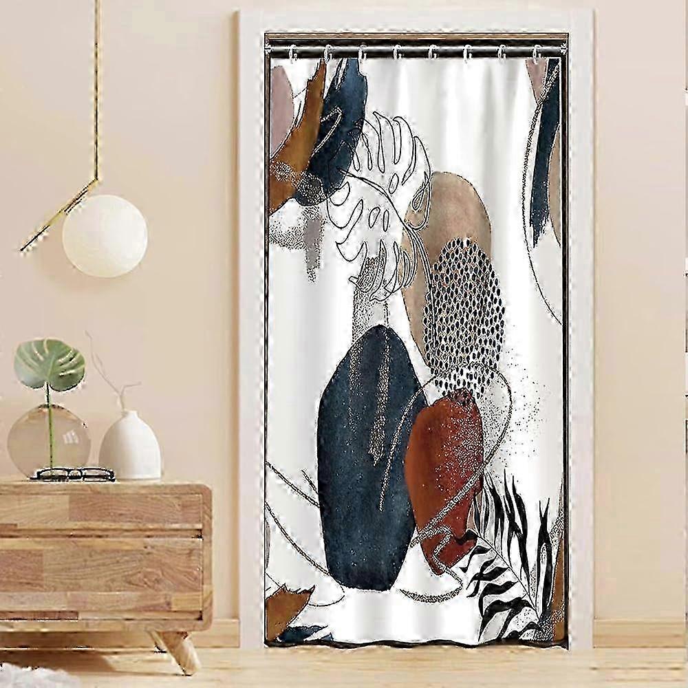 Boho Bathroom Shower Curtains Abstract Mid Century Navy Blue Gold Stall Decor with Hooks Modern Geometric Tropical Palm Leaves Minimal