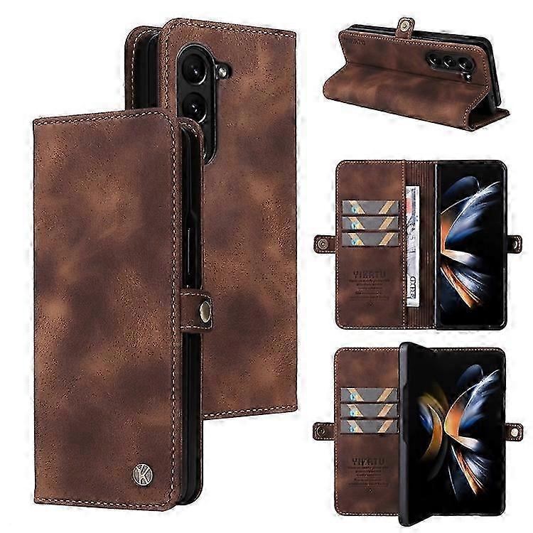 YIKATU YK-002 Compatible For Samsung Galaxy Z Fold6 5G Case PU Leather Skin-touch Phone Cover (New Model)