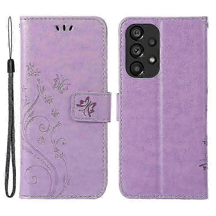 Compatible For Samsung Galaxy A33 5G PU Leather Smartphone Case Stylish Imprint Butterflies Wallet Anti-drop Cover (New Model)