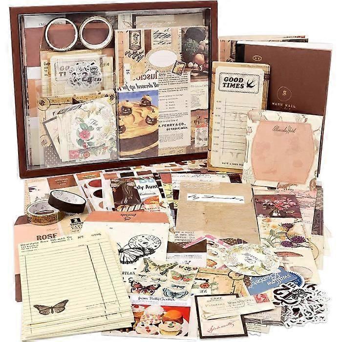 155 Pcs Vintage Scrapbooking Accessories Set with A6 Grid, Travel Journal Stickers, DIY, Gift for Girls and Women