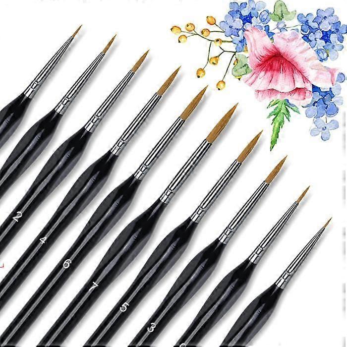 Detail Brushes - Unbranded - 10 Pieces - Wooden Triangular Handles - For Acrylic, Watercolor, Oil