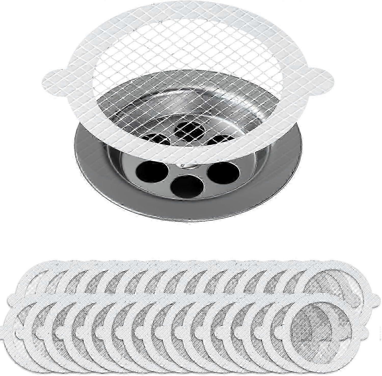 30 Packs Disposable Shower Drain Hair Catcher White Fibrous Flat Shower Drain Floor Covers Mesh Stickers for Bathroom Kitchen Drain St