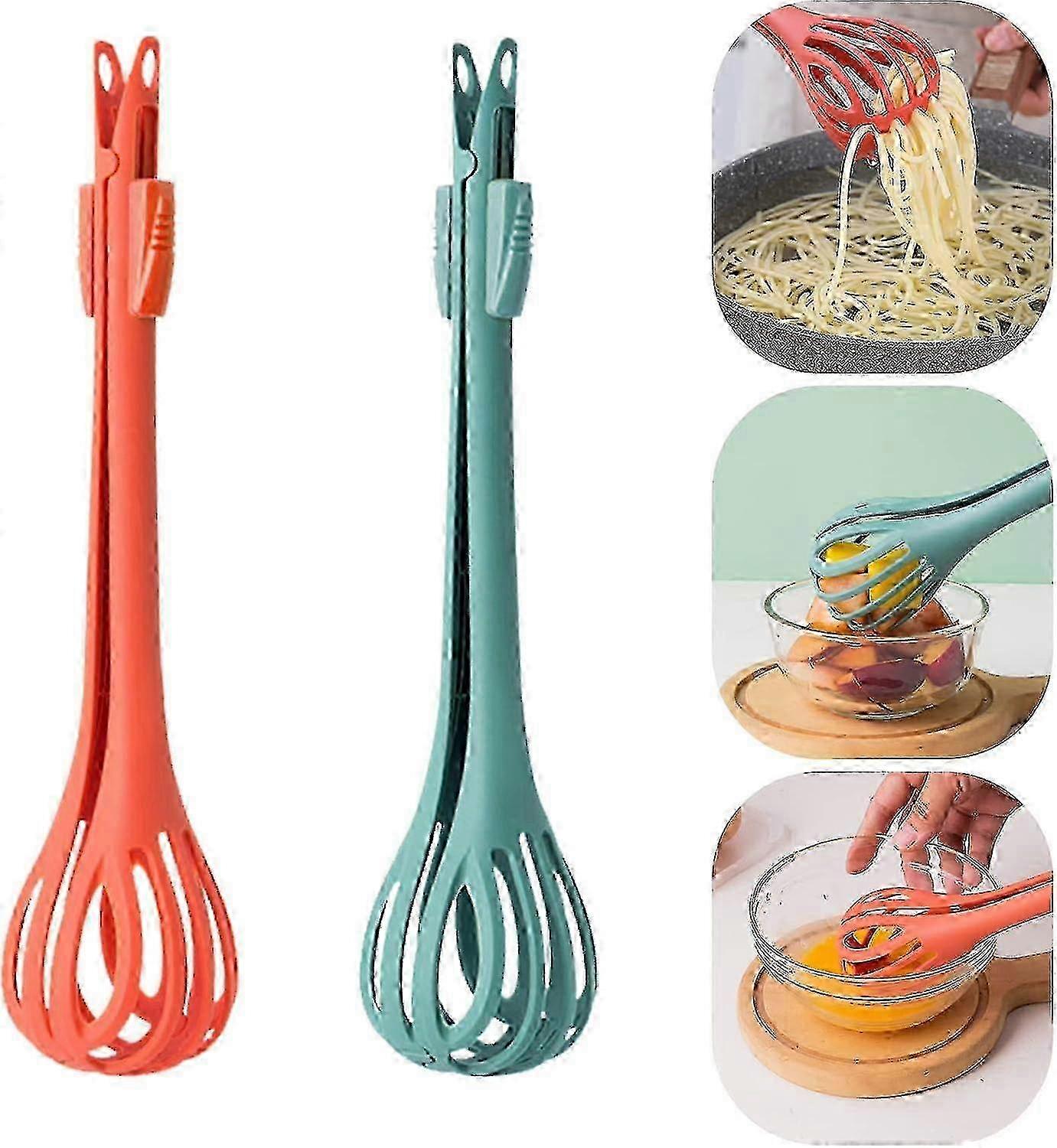 2pcs Egg Whisk For Cooking 2 In 1 Food Clip & Egg Beater Non-stick Multifunctional Heat Resistant Kitchen Whisks Tool For Blending, Wh