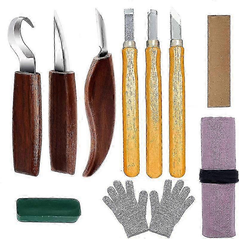 10Pcs Carbon Steel Wood Carving Tools Set with Hook Knife for Woodworking