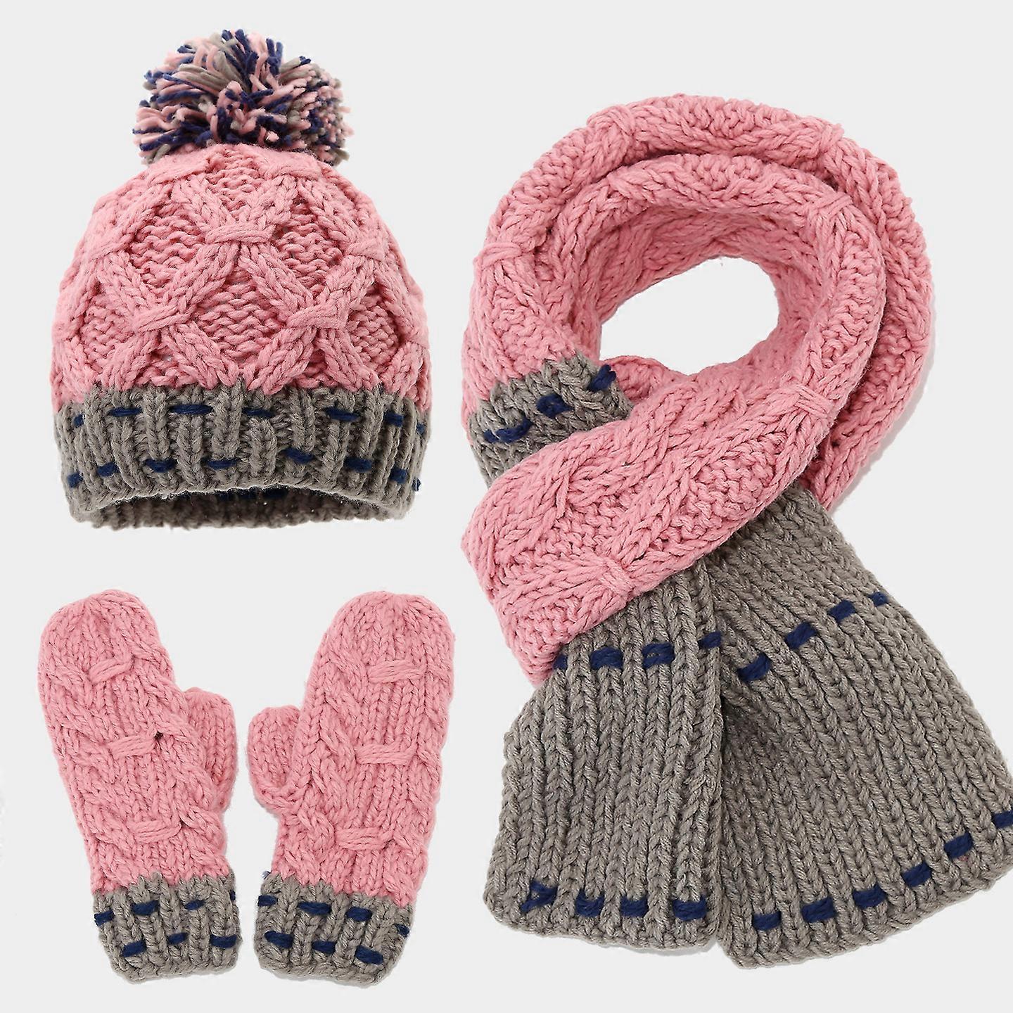 an And American Fashion Color Matching Wool Hat Scarf Gloves Three-Piece Autumn And Winter Warm Cold Hat Set