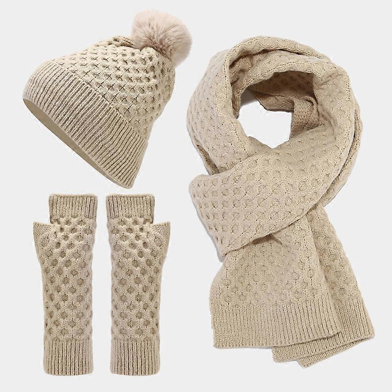 Autumn And Winter New Solid Color Thick Wool Hat Scarf Gloves Three-Piece Set Of Fashionable an And American Fashion Shopping Warm Suit