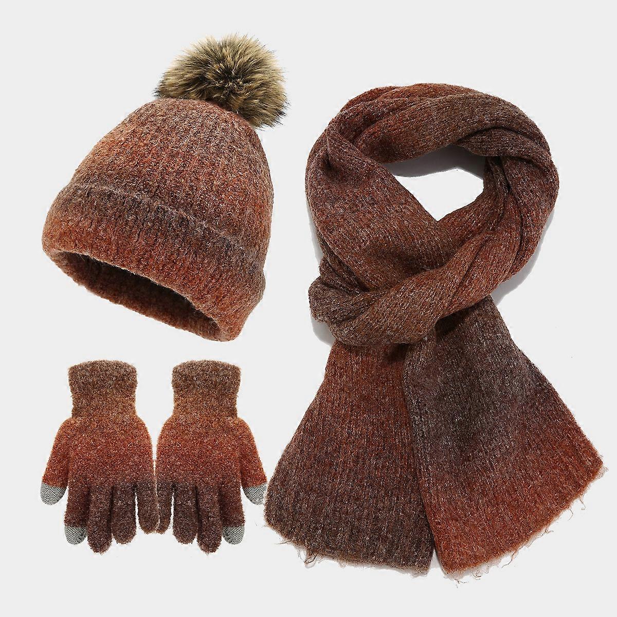 New Tie-Dye Yarn Hat, Scarf, And Gloves Three-Piece Set – an And American Fashion Pom-Pom Knitted Hat Set