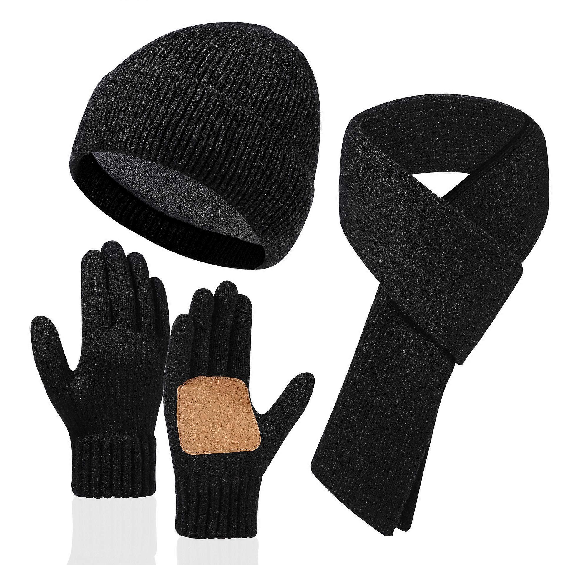 Hat, Gloves, And Scarf Set For Men, Winter Thermal Knit Hat, Outdoor Cycling Touchscreen Thickened Gloves For Women