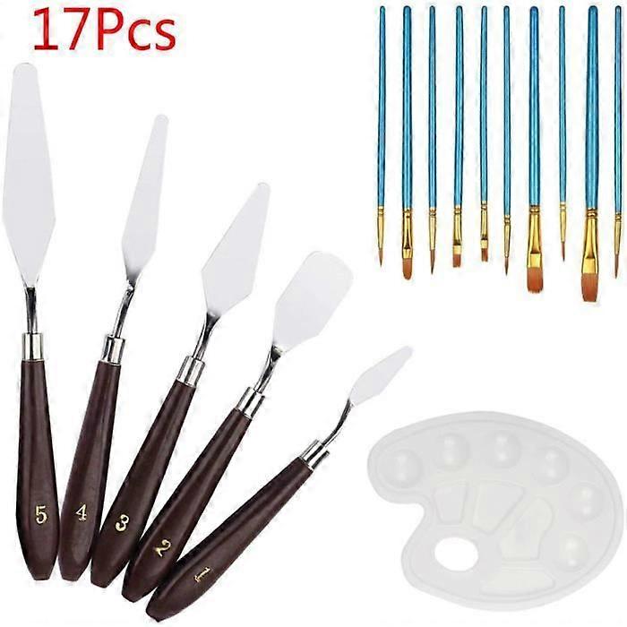 Palette Knife Set and 10 Pcs Oil Painting Brushes Set Tool for Acrylic Paintings Spatula, 2 Plastic Tray