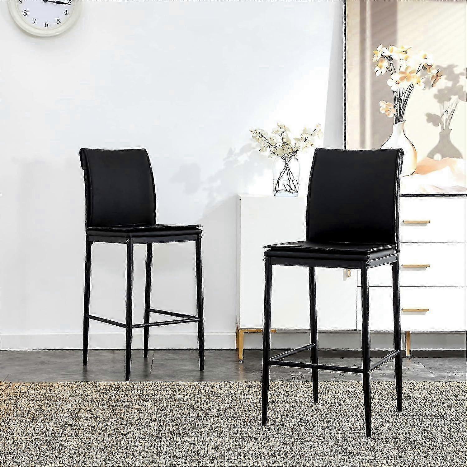 Bar Stool Counter Height Bar Stools Set of 2 with Metal Legs and Wingback, Leather (Black)