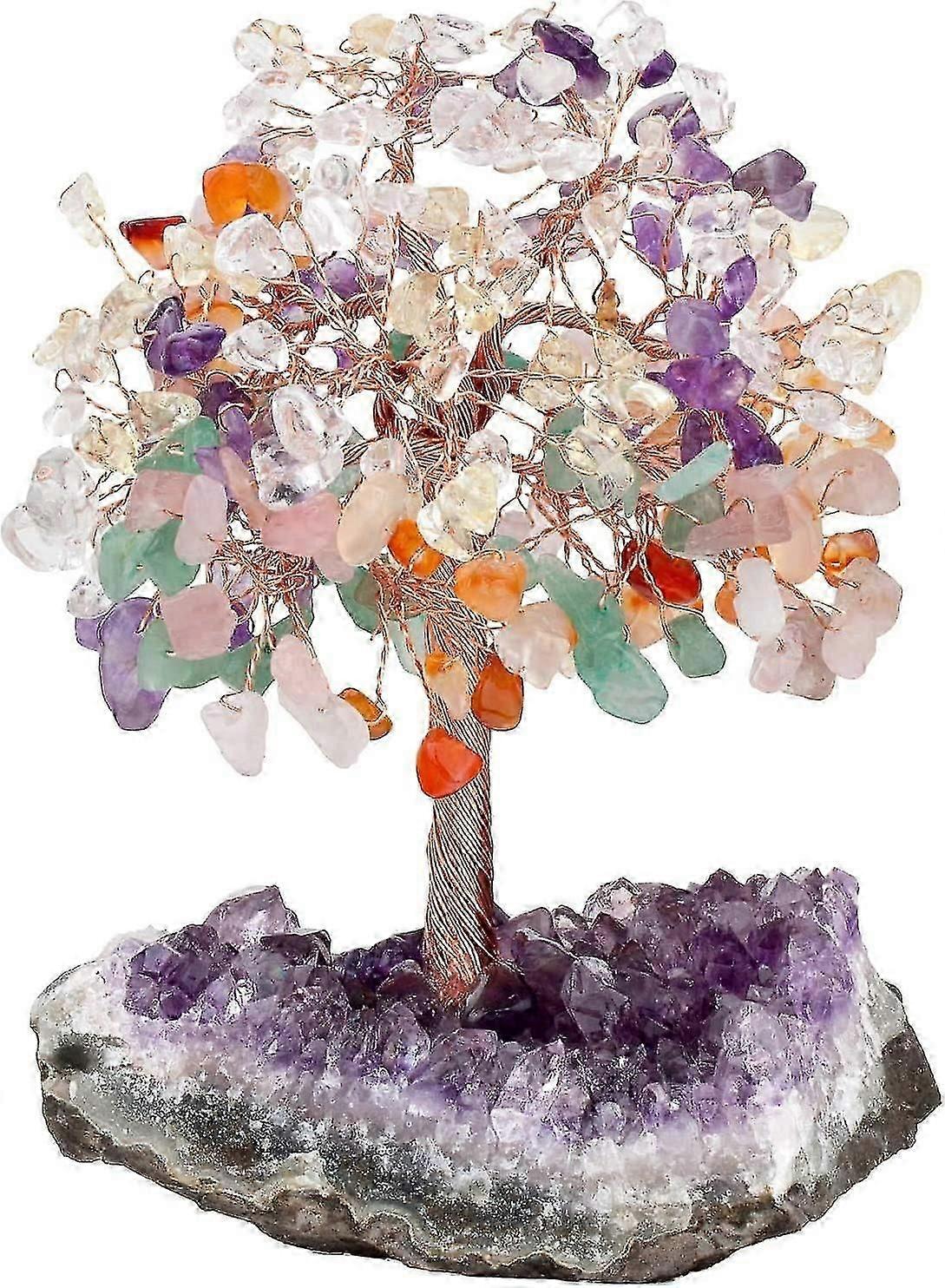 Natural Rose Quartz Aquamarine Amethyst Crystal Tree With Amethyst Cluster Crystal Base Money Tree Figurines Feng Shui Desk Decoration, Meditationu