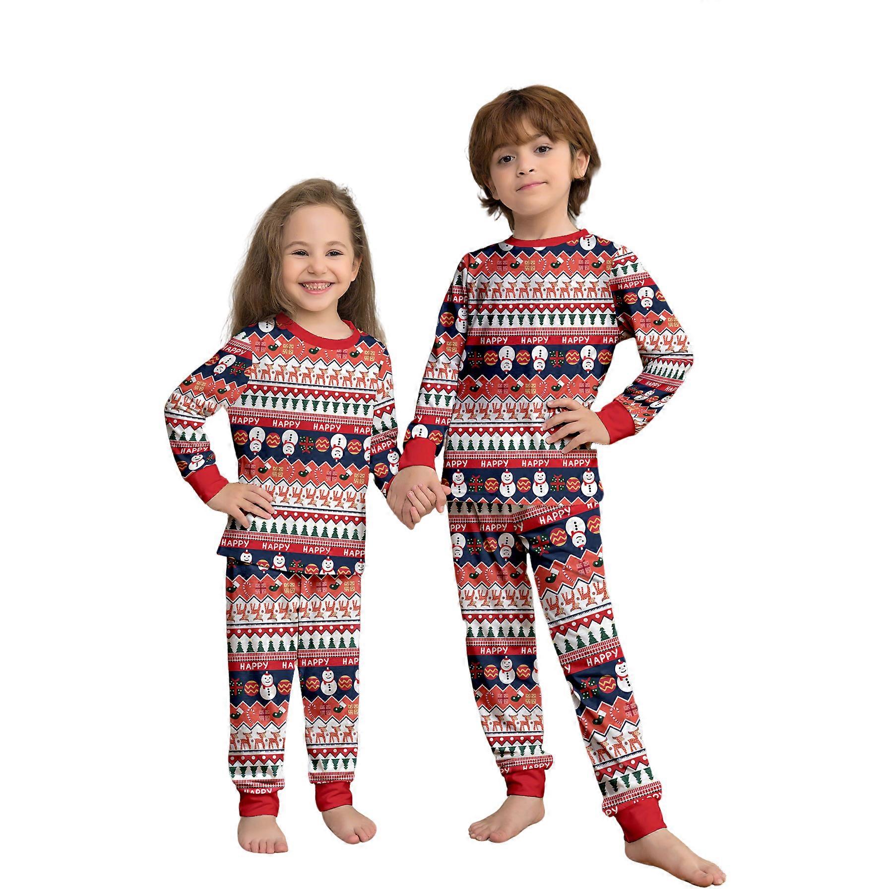 Kids' Unisex Christmas Pajama Sets - Nordic Pattern with Snowmen & Reindeer, Festive Xmas Sleepwear