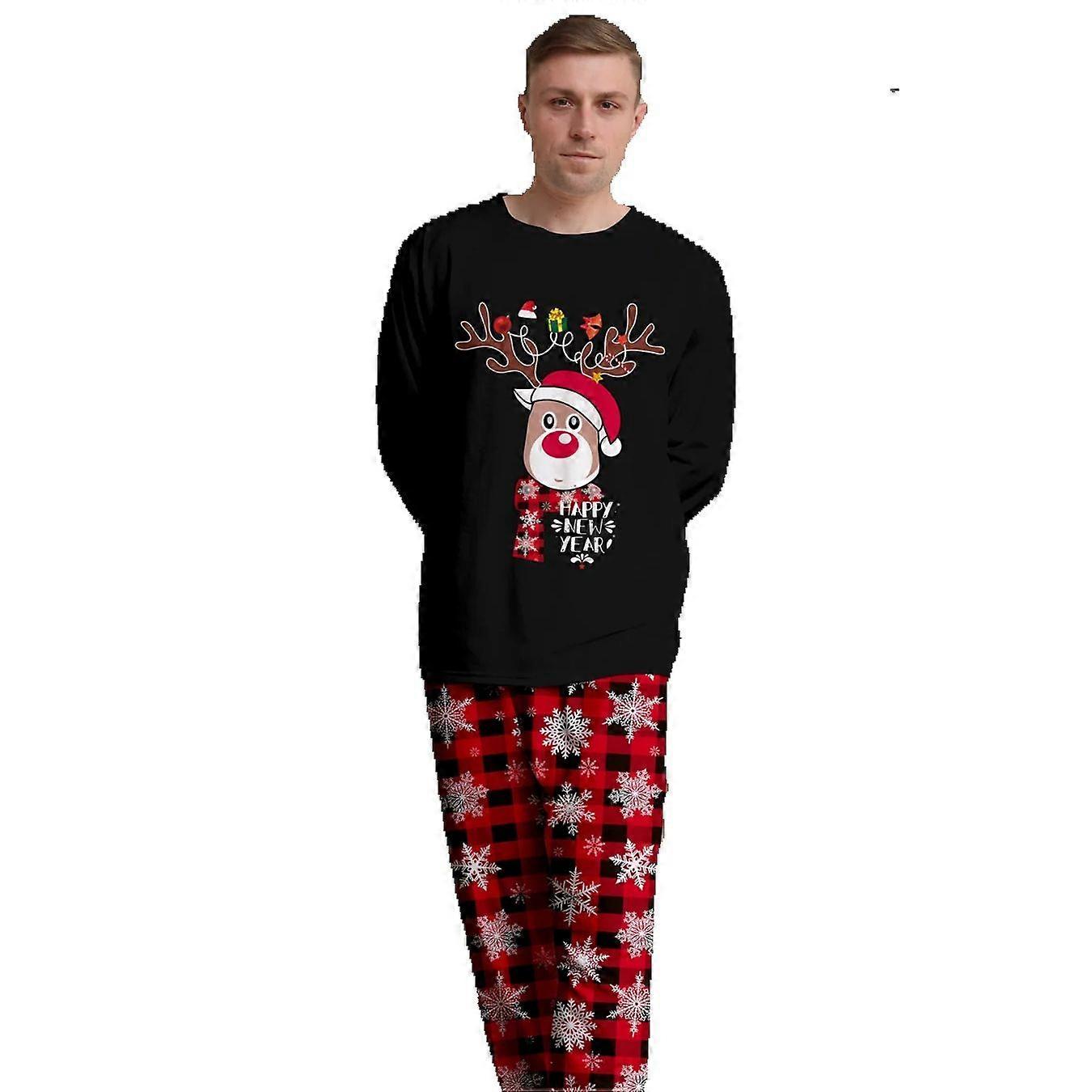 Men's Christmas - New Year Pajamas Set with Reindeer & "HAPPY NEW YEAR" Print, Plaid Snowflake Pants, Festive Loungewear