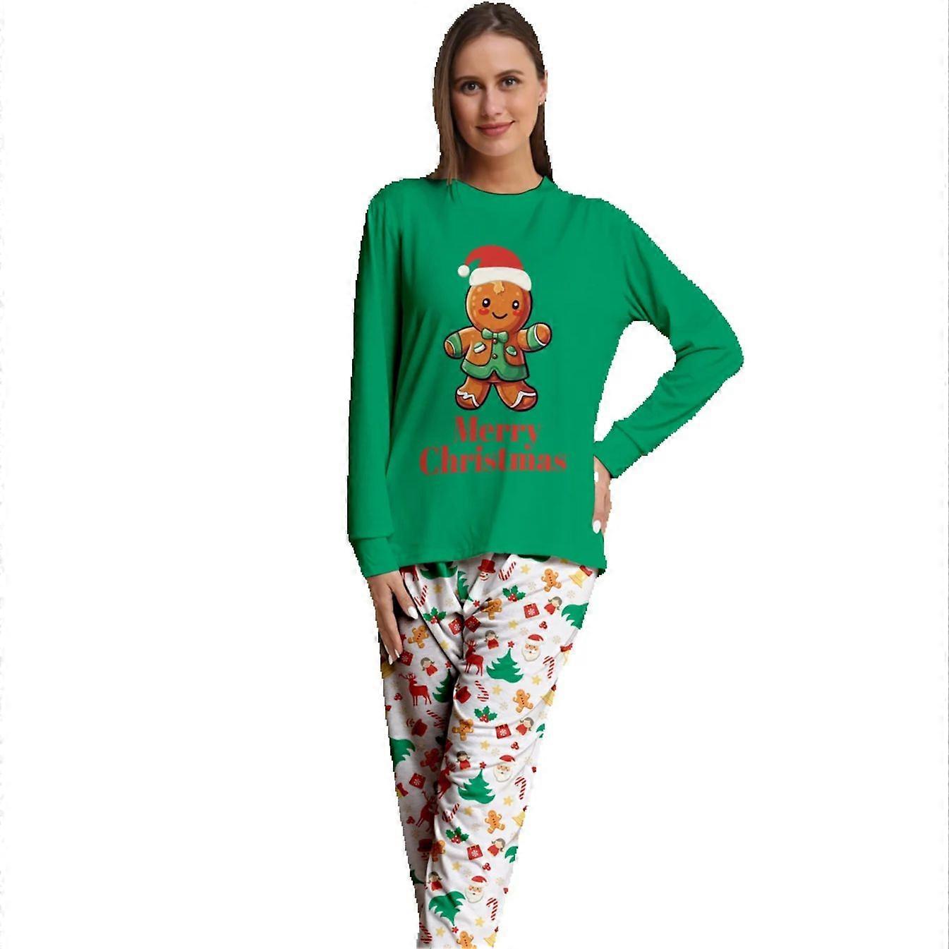 High - Quality Women's Christmas Pajamas, Green Gingerbread Man Top & Festive Patterned Bottoms