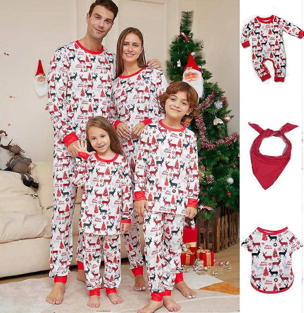 2024 Family Xmas Pajamas Matching Set New Year Fashion Red Cartoon Christmas Deer Print Adult Kids Pj's Baby Romper Dog Clothes