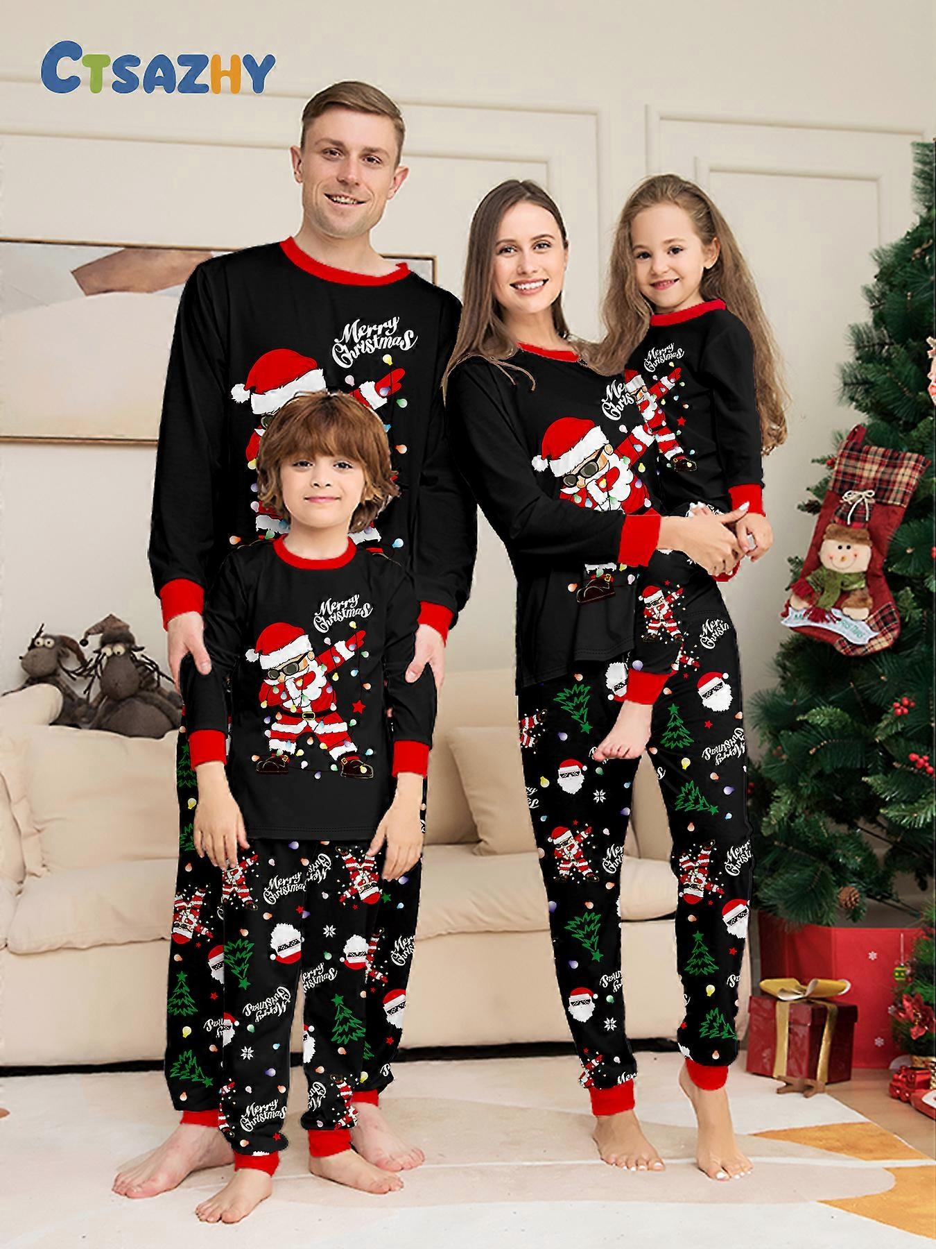 Family Matching Christmas Pajamas Set with Santa Claus Print, Festive Xmas Loungewear