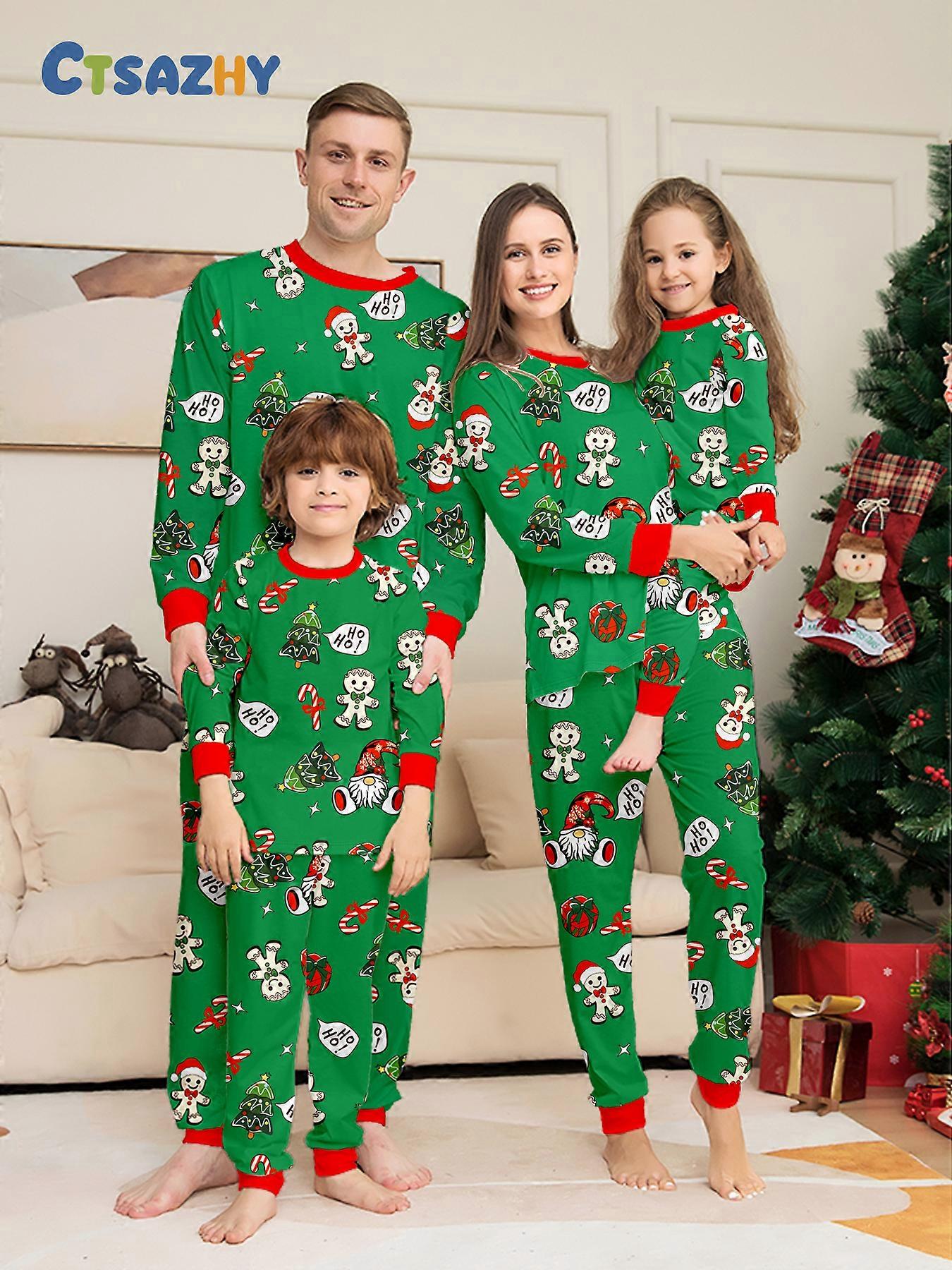 Matching Family Xmas Pajamas - Adorable Gingerbread, Candy Cane & "Ho Ho Ho" Prints, Perfect for Family Bonding