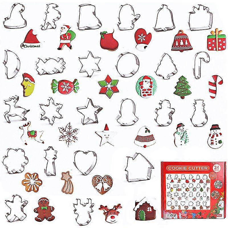 24PCS Christmas Cookie Cutters Set - Stainless Steel Metal Cookie Cutters Christmas Shapes, Large Small Mini Gingerbread Man, Snowflake, Christmas Tre