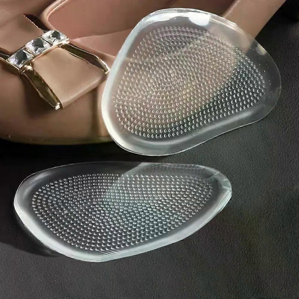 Silicone Forefoot Pad Women High Heels Sandals Pain Relief Insert Soft Gel Anti-slip Insoles Toe Cushion Foot Care Shoes Pad It adopts soft Silicone gel material, has good elasticity, and has strong shock absorbing ability. It also can relieve the pain of the forefoot caused by standing for a long time and wearing daily heels. The raised dot design can better massage the forefoot and anti-slip effect. Easy to use, the sticking is firm and not easy to slide and the shoe is not damaged. Suitable for people with pain in the forefoot, standing for a long time, and large shoes. Also suitable for high heels, shoes, shoes and other shoes, can be used under daily activities. Size: Length: 9.4cm, width: 6.2cm Package Includes: 2Pcs=1Pair of Forefoot Pads _x000D_ _x000D_