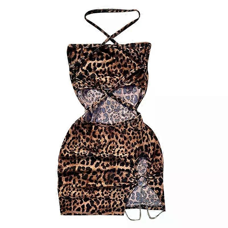 Elegant And Fashionable Women s Sexy Leopard Print Mini Dress Strapless Sleeveless Hollow Bag Hip Sexy Summer Holiday Dress