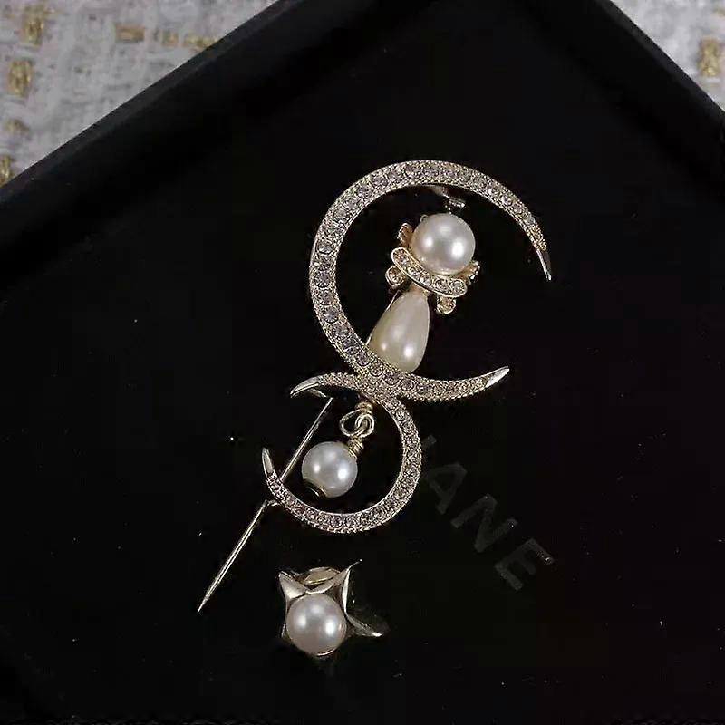 Silver Needle Pearl Brooch Pin Yellow Brass Material Sweater Jacket Chest Flower Simple Design Crystal Accented Jewelry Accessor
