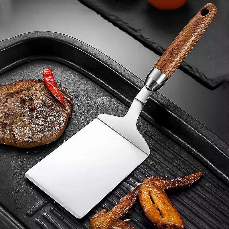 304 Stainless Steel Steak Spatula Non-stick Pancake Barbecue Tongs Wood Handle Frying Fish Spatula Rust Resistant Kitchen Tool