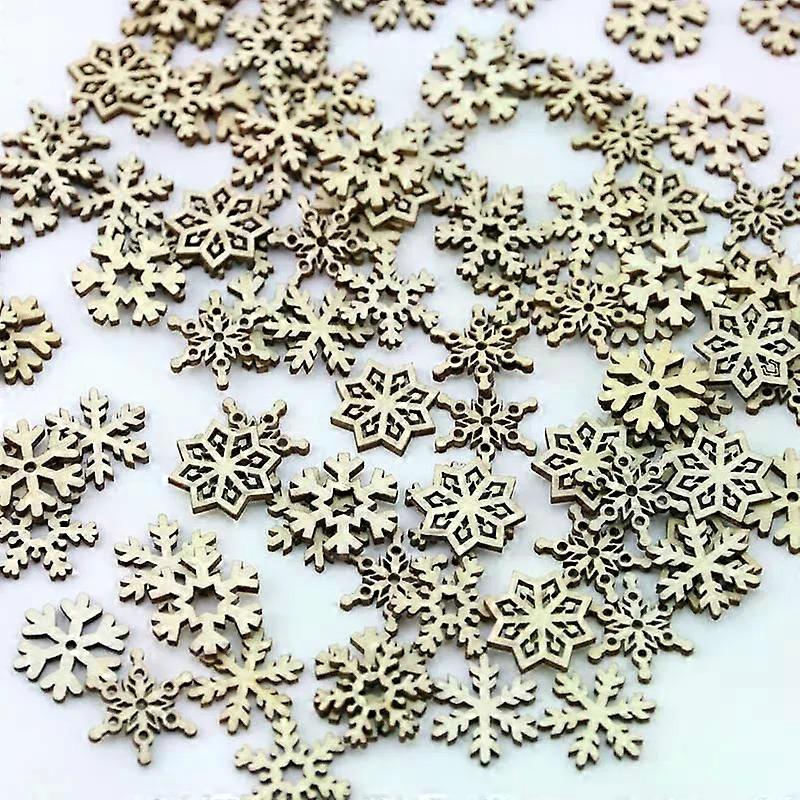 (100 Pieces/pack) 25mm Wooden Snowflake Mixed Snowflake Christmas Tree Pendant New Year Home Decorations