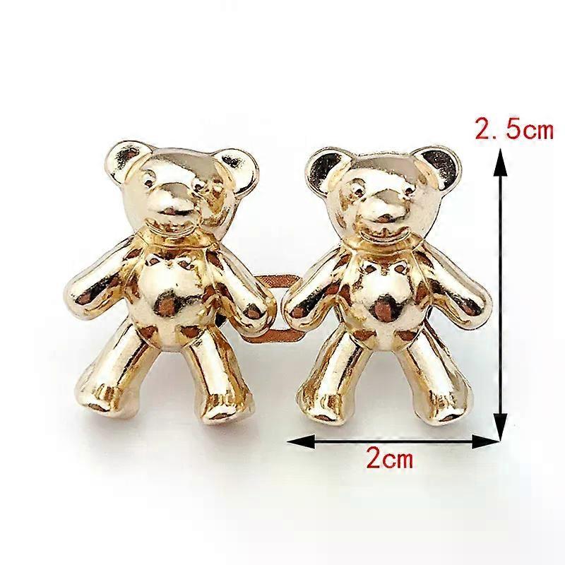 2PCS Metal Dual Purpose Tighten Waist Button Cute Bear Adjustable Buckle Pins Brooches Women Pant Jeans Detachable Clip