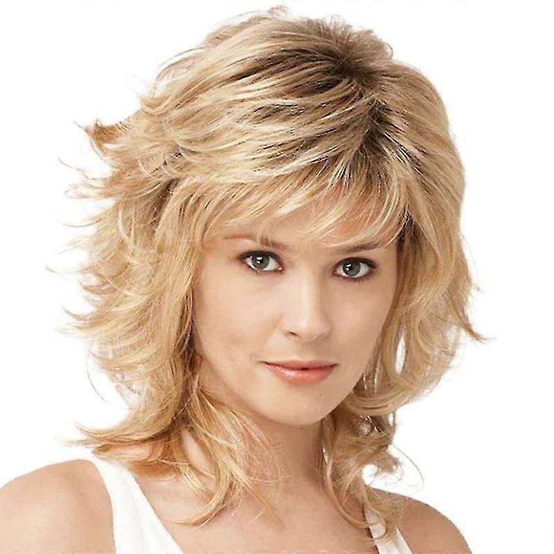 Luxora Women's Natural Blonde Curl Wigs Fluffy Layered Hair With Bangs Cosplay Party Daily Full Wig