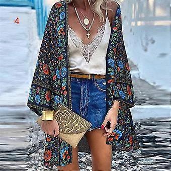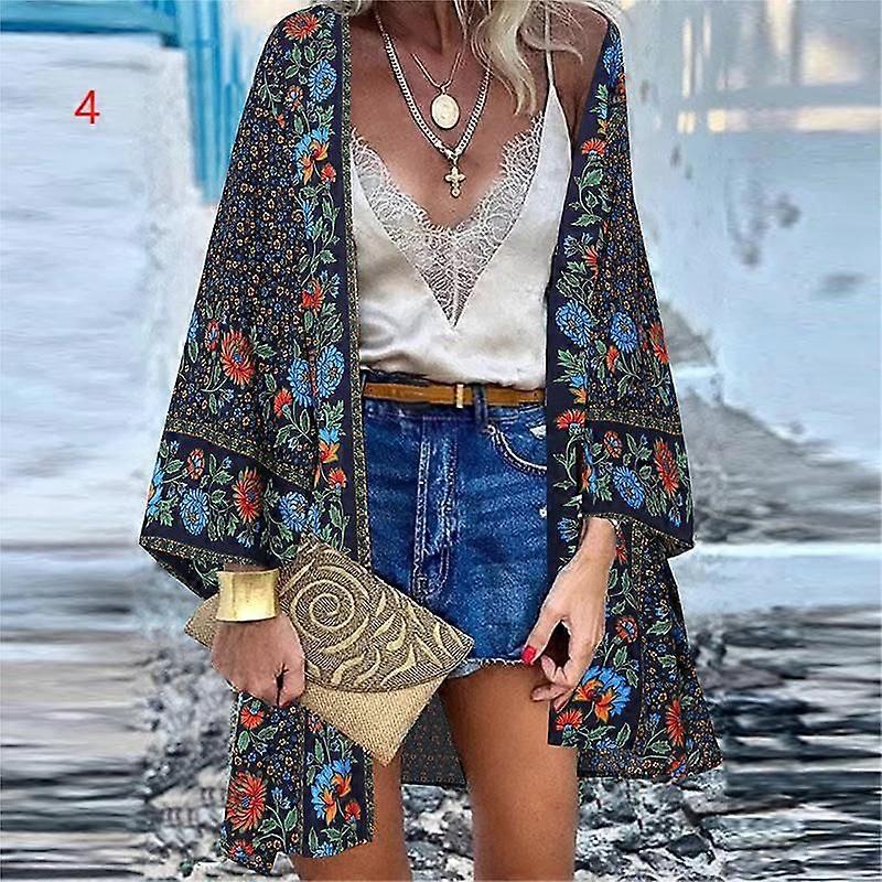 Luxora Zanzea Women's Kimono Cardigan Boho Floral Print Beach Cover Up 3/4 Sleeves Chiffon Bikini Sarong Shawl Top