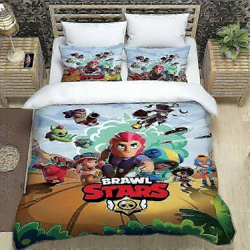 x2247 Draps de lit Jeu B-rawl Dessin animé S-stars Parure de lit Garçons Filles Twin Size Housse de couette Taie d’oreiller Lit garçons Chambre