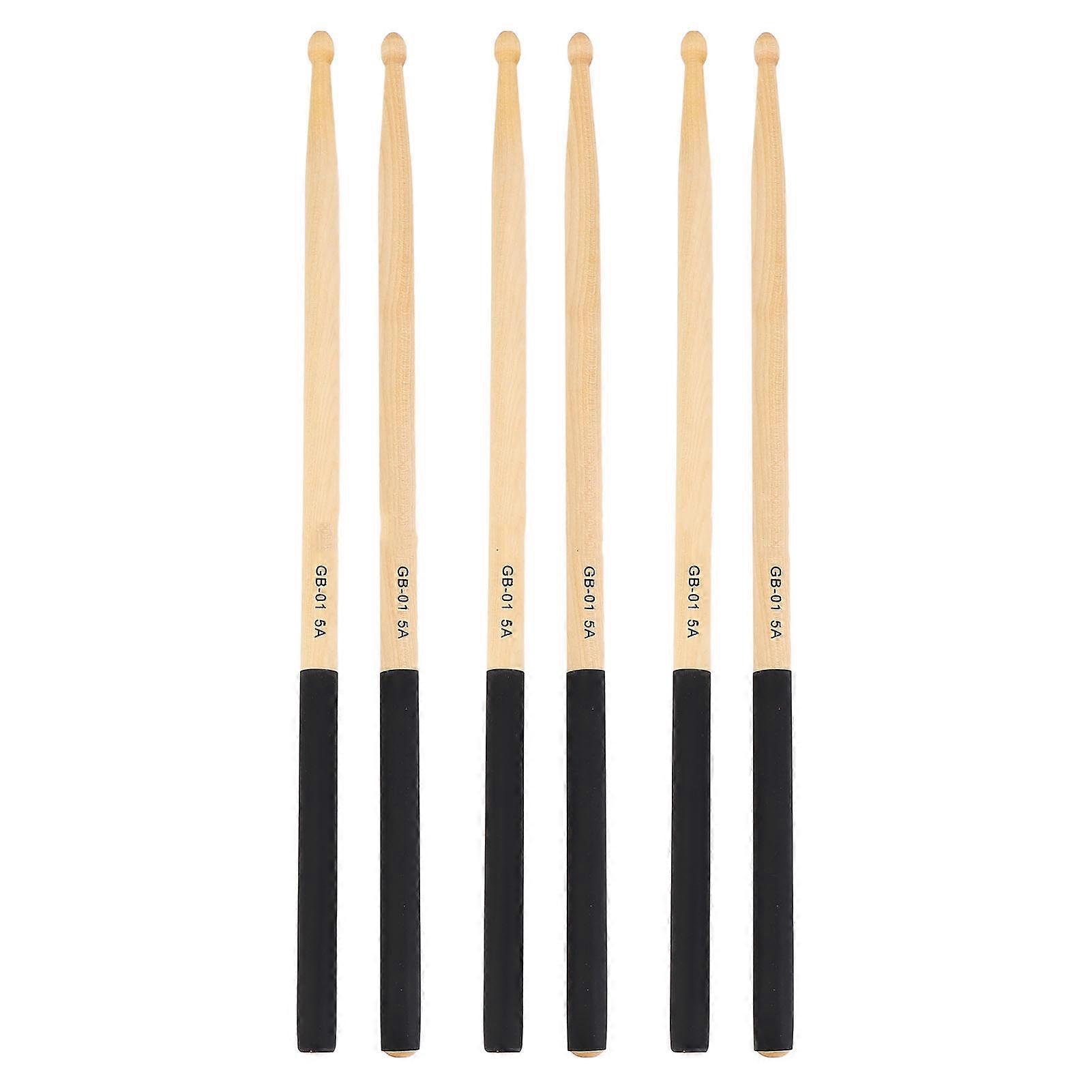 3 Pairs Drumsticks 5A Wooden for Drum with Black Non Slip Handles Kids Adults Musical Instrument Percussion Accessories