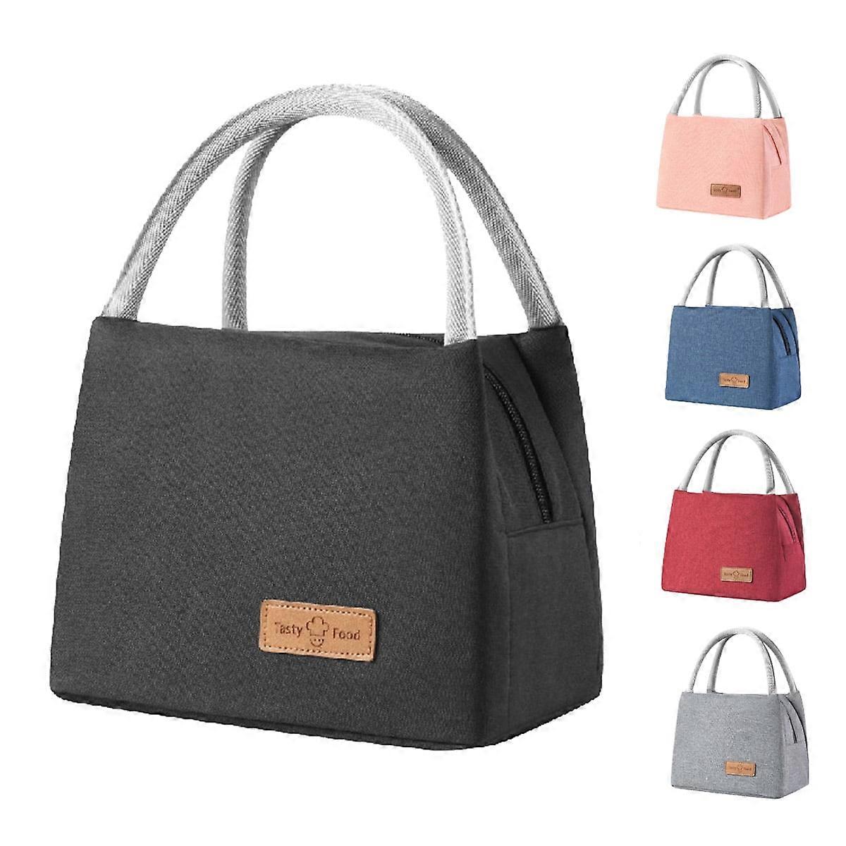Portable Handle Lunch Bag Thermal Insulated Lunch Bento Bag Outdoor Storage Handbag Food Tote Bags,Black