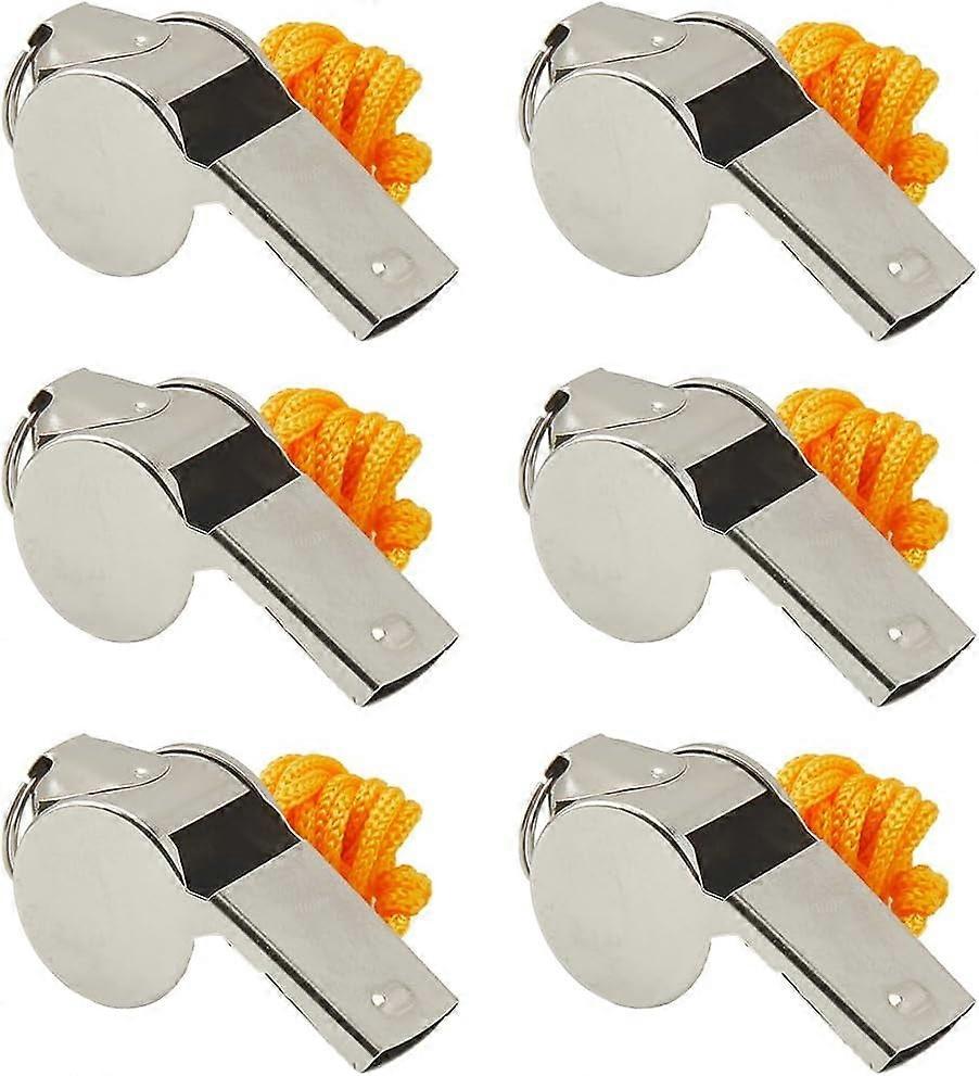 Stainless Steel Whistle with Rope Stainless Steel Color 56x17.5x20.5mm 6pcs/set
