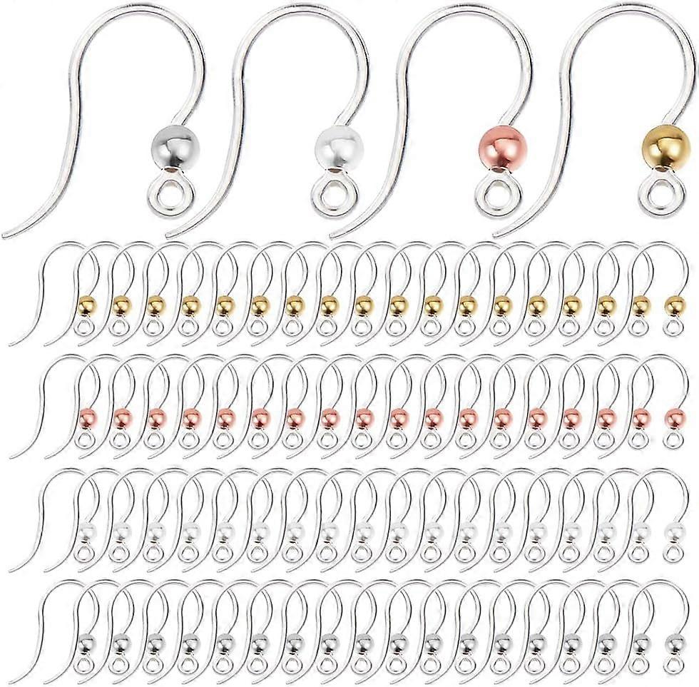 1 Box 80Pcs 4 Colors Plastic Earring Hooks, compatible with French Ear Studs, Ball Dot Silver Clear Safety Fish Hooks for DIY Dangle Earrings Crafts