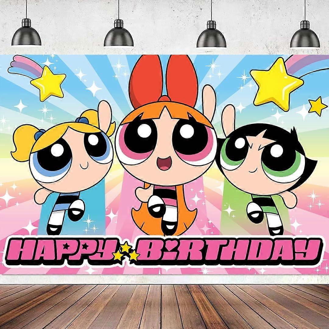 5×3FT Powerpuff Birthday Decorations Happy Birthday Banner, Powerpuff Birthday Party Decorations for Children Party Decorations
