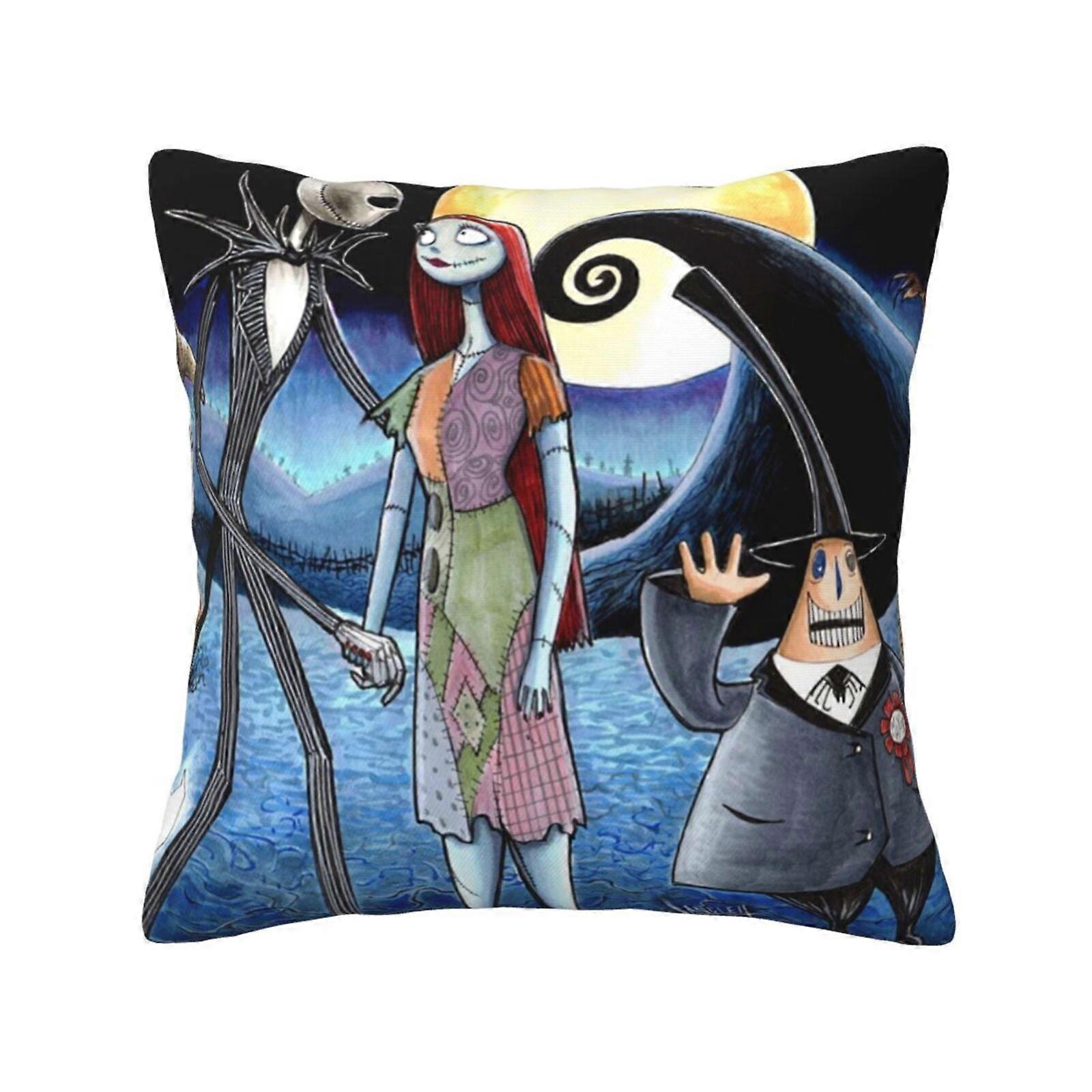 Cute The Nightmare Before Christmas Pillowcase, Jack & Sally Skellington Printed Cushion Cover Compatible with 16x16 in Insert for Bedroom, Sofa, Car
