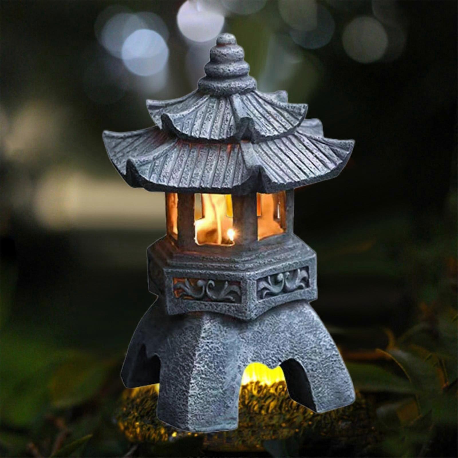 Solar Pagoda Lantern Garden Statue LED Light Outdoor Zen Garden Japanese Lantern for Landscape Balcony Patio Porch Yard Art Decor Gray Stone Finish